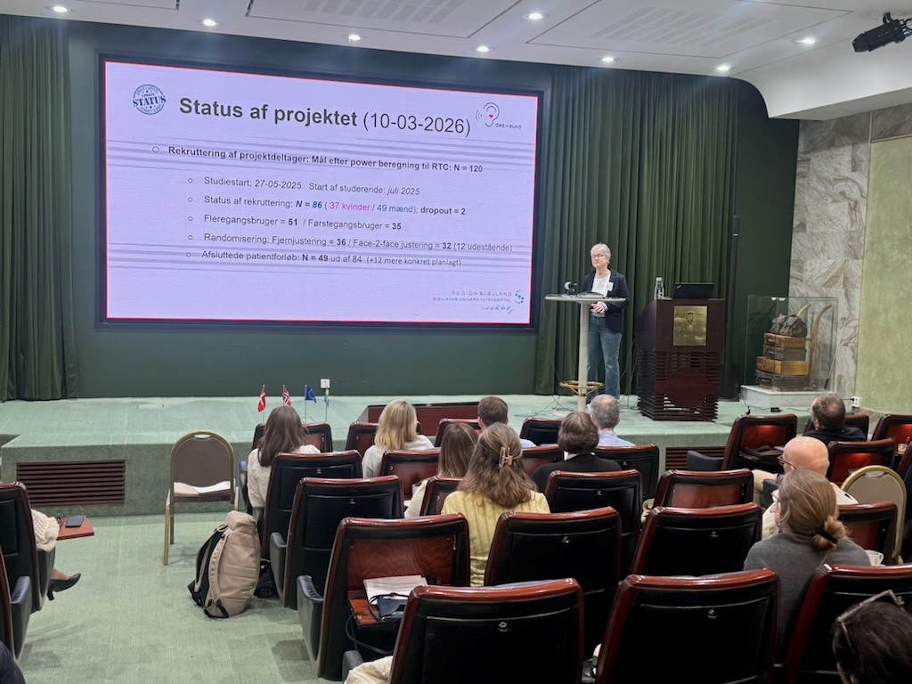 Det overordnede status af projektet blev præsenteret af forskningsleder Bjarki Djurhuus fra Sjællands Universitetshospital, hvorefter formiddagen bød på en række korte, fokuserede oplæg om status fra de forskellige delprojekter: